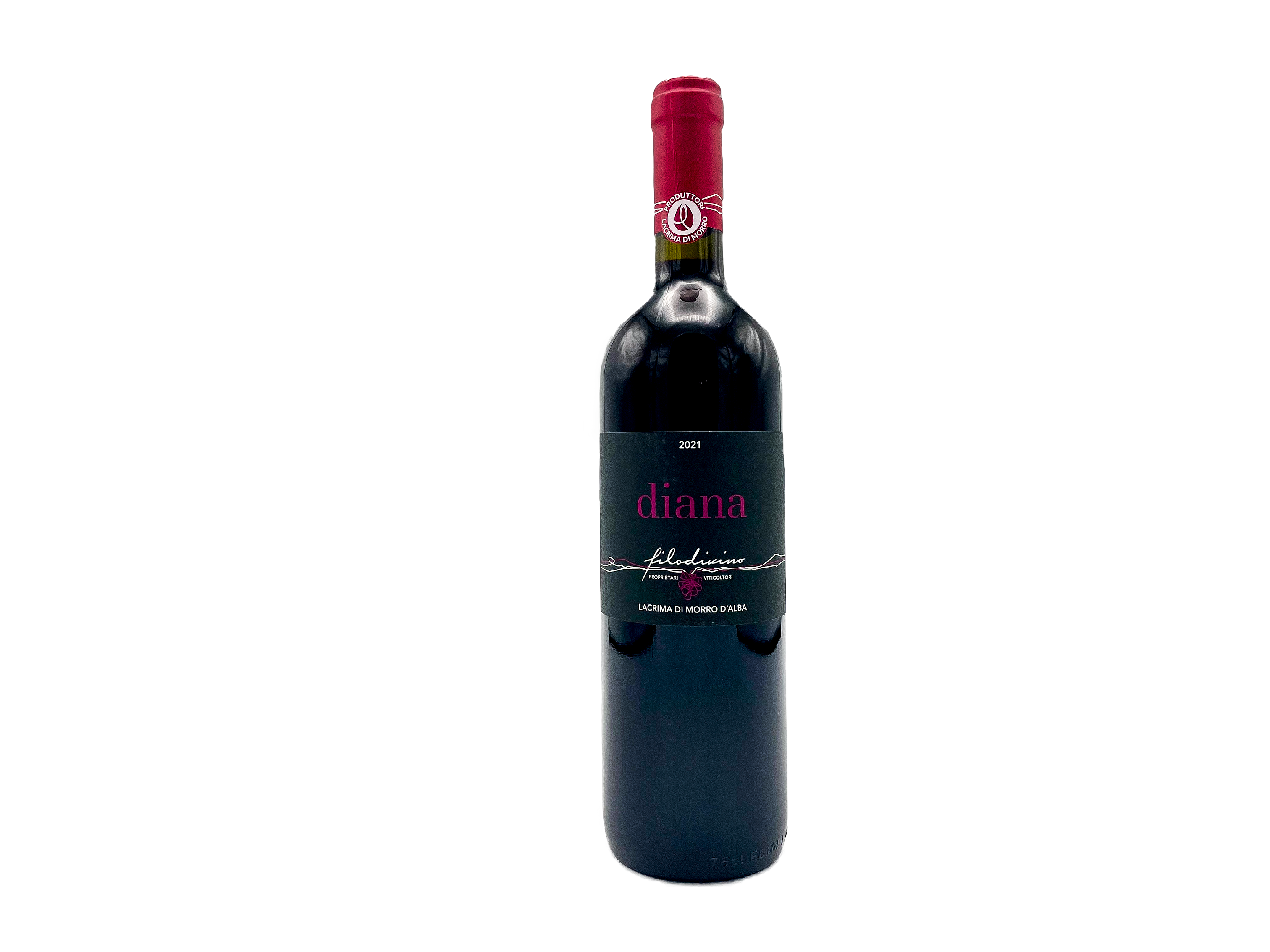 Filodivino Diana Lacrima di Morro D'Alba | Lacrima di Morro D’Alba doc BIO Diana is een wijn met een diep donkerrode kleur met paarse tinten. De neus suggereert tonen van rozen, vanille, kaneel en hout. In de mond is het rond en omhullend, met hints van pruim, kers en amandel. De wijn heeft een goede structuur, een fijne balans met zachte en fijne tannines en een korte afdronk. De wijn past goed bij vleeswaren en verse kazen, pastagerechten en hoofdgerechten met wit vlees, maar ook bij gegrilde vis en bouillon. | rode-wijn | lacrima-di-morro-dalba | biologisch | 2022 | ||||